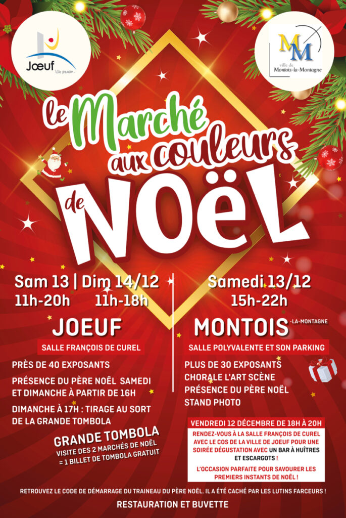 Pour la deuxième année consécutive, Joeuf et Montois-la-Montagne s’unissent pour vous offrir un week-end féerique, rempli de surprises, de convivialité et d’esprit de Noël.