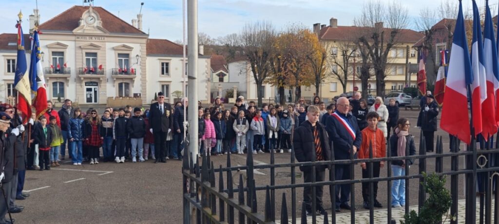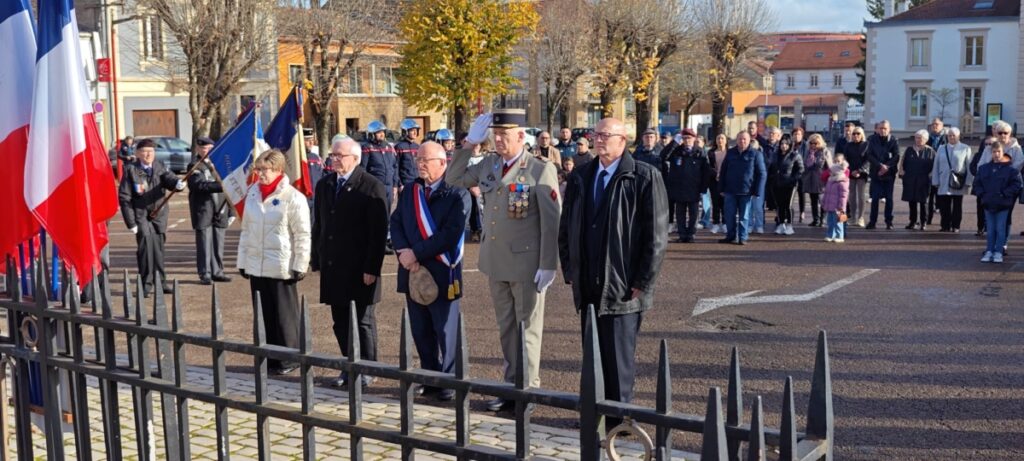 Le mardi 11 novembre, la cérémonie a réuni élus, associations patriotiques et habitants autour du Monument aux morts pour un hommage solennel et le dépôt de gerbes, avant de partager un vin d’honneur à la salle François de Curel.