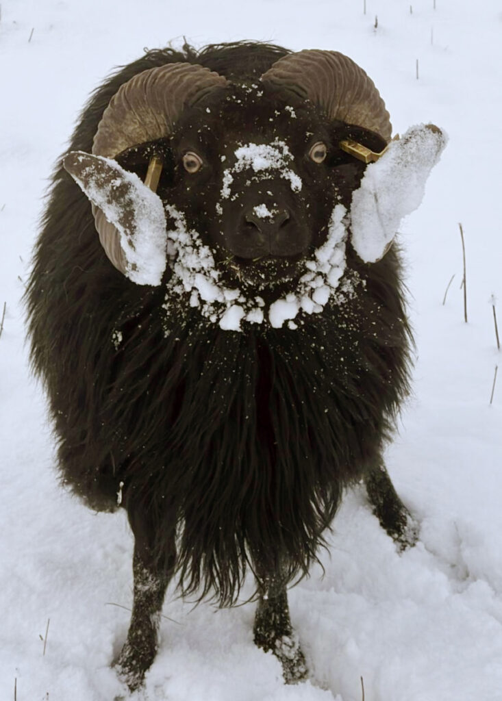 • Nos moutons sont parfaitement adaptés aux températures froides grâce à leur épaisse toison naturelle. Leur laine et leur couche de graisse les protègent efficacement du froid, de l’humidité et du vent ; ils peuvent supporter des températures bien en dessous de zéro sans problème !
